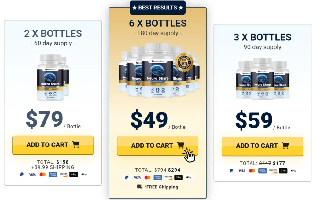 If you’re looking for a sharper, more productive, and confident mind, NeuroSharp is an investment that truly makes sense. To ensure the best results, purchase only from the official website, guaranteeing authenticity and quality.